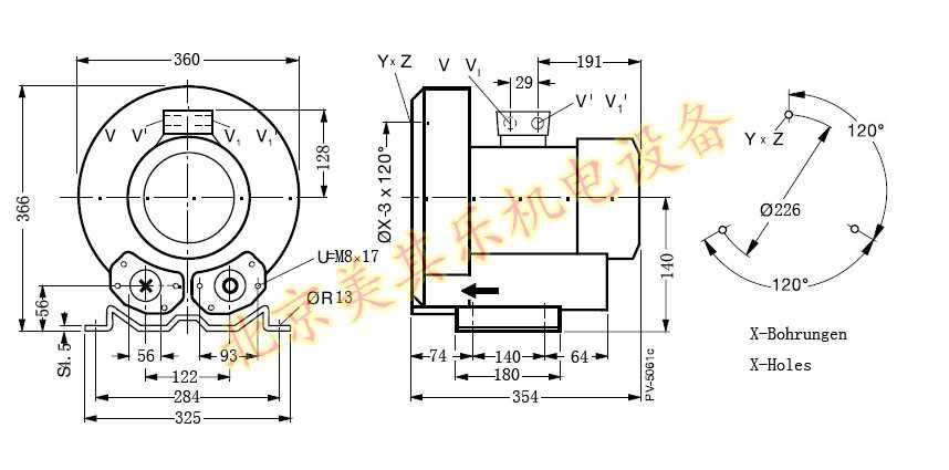 2.2kw漩渦氣泵尺寸圖: